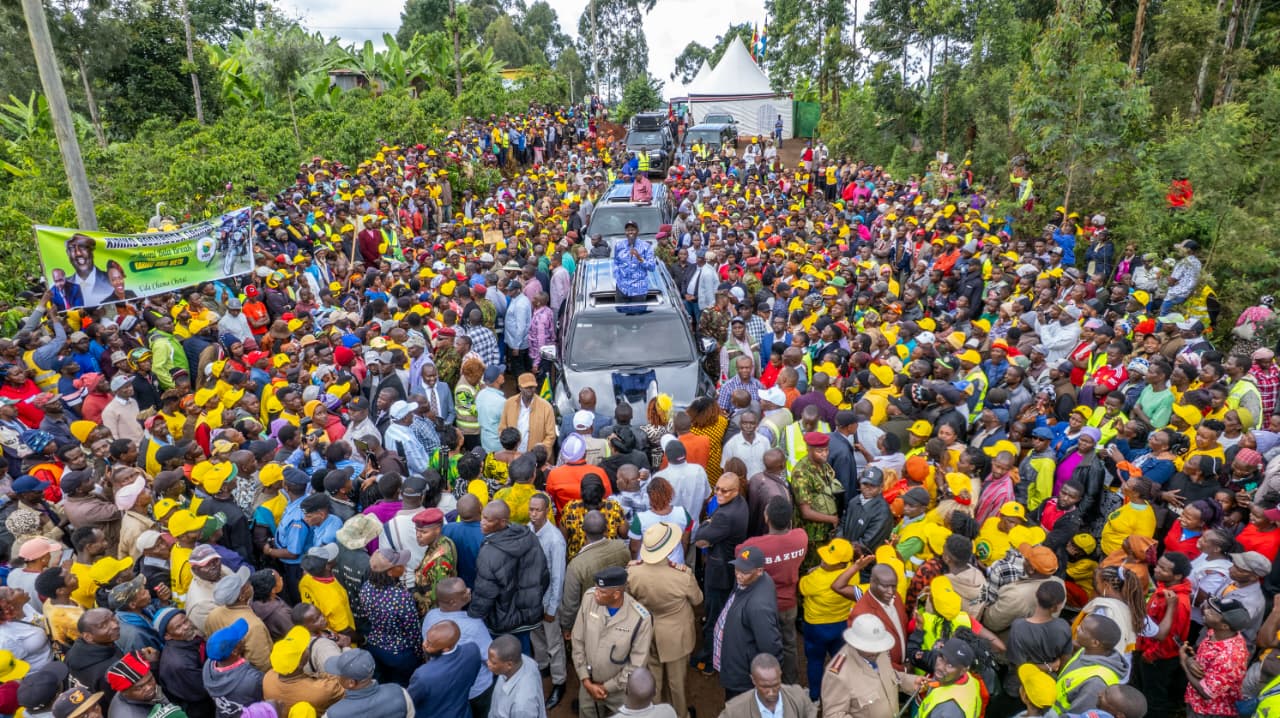 He announced increased funding for infrastructure, noting that the Mau Mau road project had received Sh2 billion to ensure completion. “I have come to announce that for the Mau Mau road, we have allocated Sh2 billion to ensure that the road is completed,” he said, adding that the Mugeka road project had already been launched in 2024 to improve connectivity in the region.