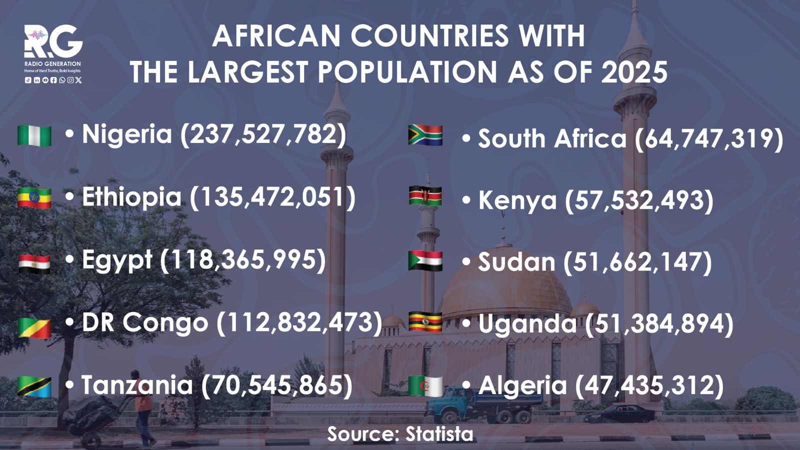 Nigeria leads Africa in population in 2025 with over 237 million people, followed by Ethiopia and Egypt.