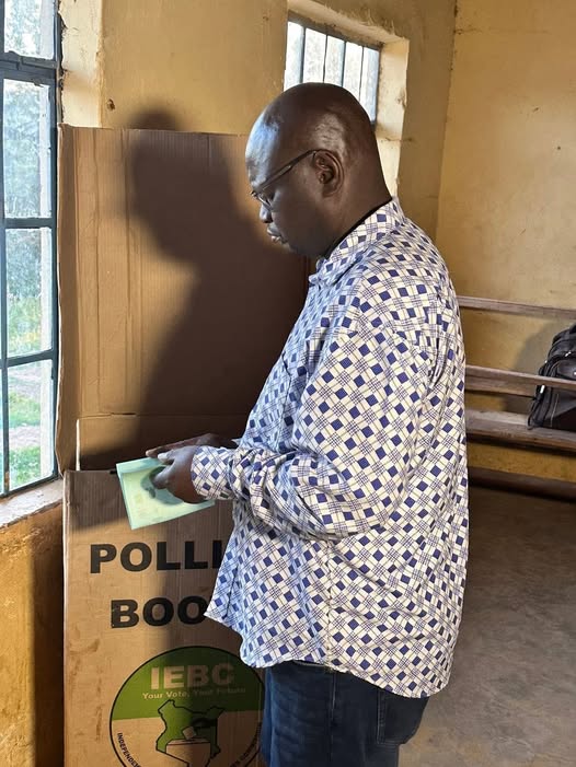 DAP–K candidate Seth Panyako casts his vote at Lunyu Polling Station in Manda-Shivanga Ward, Malava Constituency
