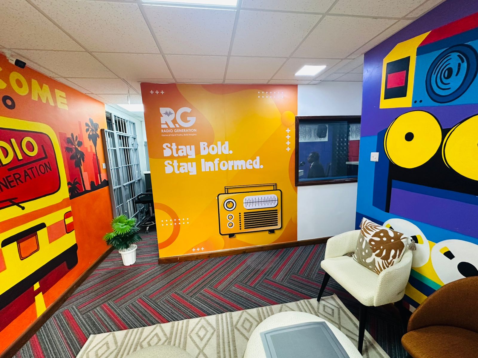 The lounge area at Radio Generation’s premises along George Padmore Road. PHOTO/Radio Generation